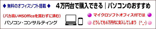 無料オフィスソフト|4万円台で購入できるパソコン